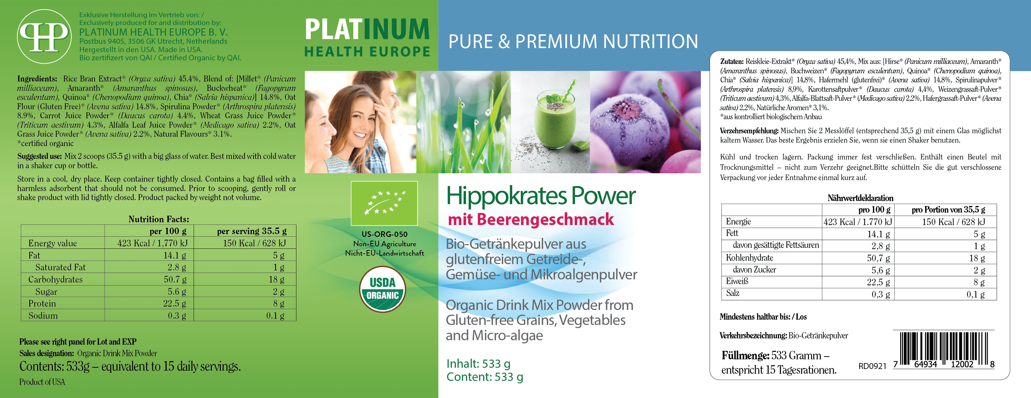 Hippokrates Power wird in zwei Geschmacksrichtungen angeboten: Standard und Beere.