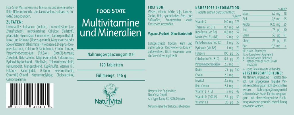 Multivitamine & Mineralien, 120 Tbl. FOOD STATE
